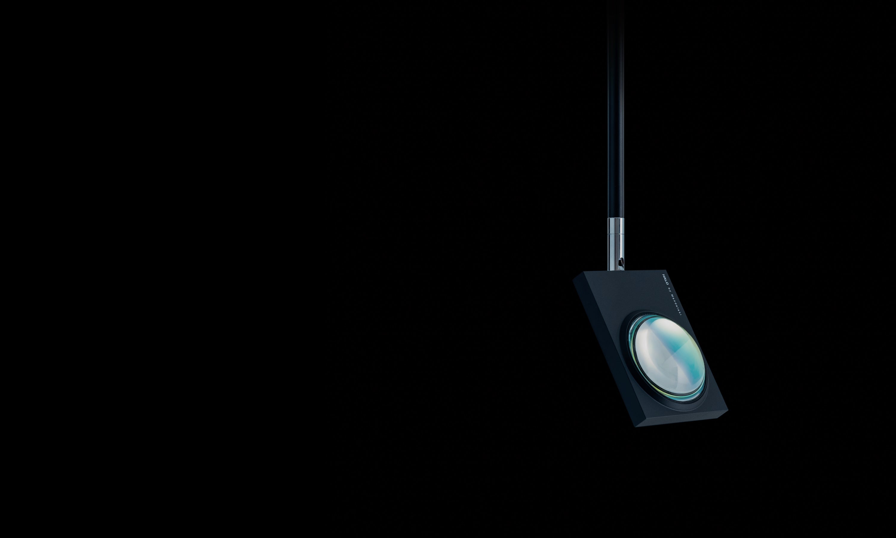 Halo Sky is a ceiling optical instrument with enhanced LED light, an articulated head and rod. The object is designed for architectural projects or site specific installations. The stem length is fully customizable according to the architecture of the space.
